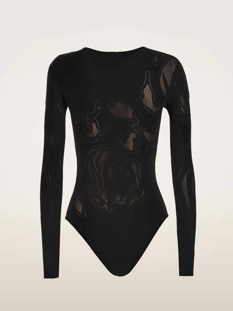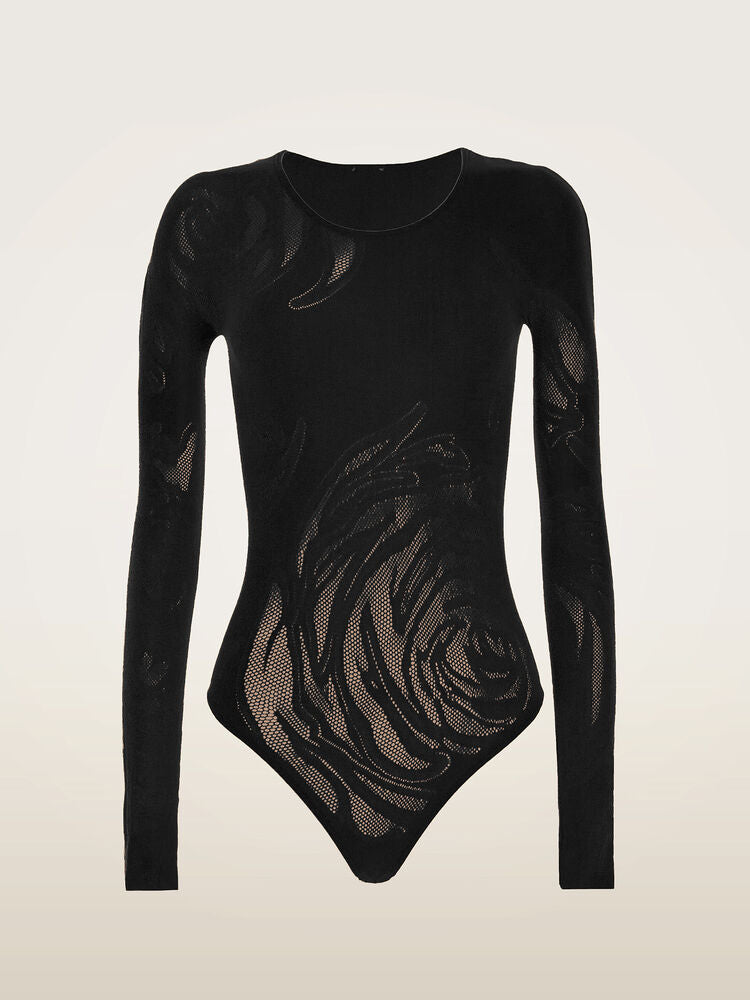 From the confident silhouette to the ladylike rose motif, this long-sleeve bodysuit evolves Wolford's signature style codes. Crafted entirely from recycled ECONYL® yarns using a sustainable dying process, no detail is overlooked – notice the flattering round neck, velvety mat texture, and Brazilian cut that hugs your curves perfectly. Treated for a quick-drying finish, the innovative warp knitting technique means each garment is constructed in one piece, ensuring a seamless ultra-flattering fit.