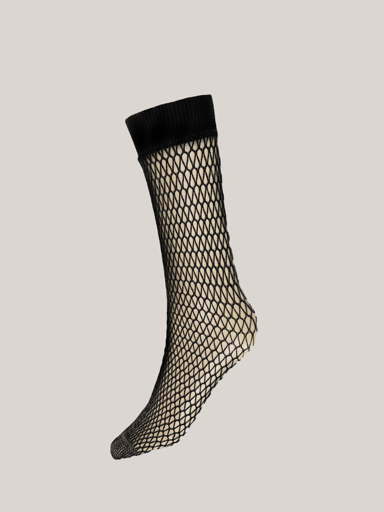 Warp-knitted net / Mat / Sustainable dyeing process / Soft ribbed cuffs / Fishnet insert at the toes