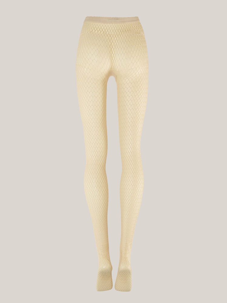 Striking net pattern / Warp-knitted net / Seamless construction / Matt / Soft elastic waistband with logo detailing / Fishnet insert at the toes prevents slipping
