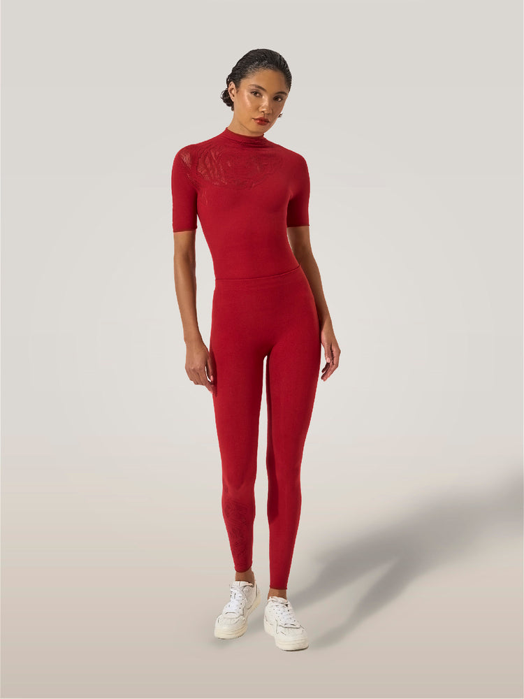 Wolford's iconic leggings return in a seasonal floral pattern. Crafted from recycled ECONYL® yarns using sustainable dyes – in line with the brand's environmental principles – they're patterned with a strategically-placed rose motif, combined with light shaping support for a flawless styling. The quick-drying fabric with a smooth mat texture delivers comfort and versatility in equal measure.