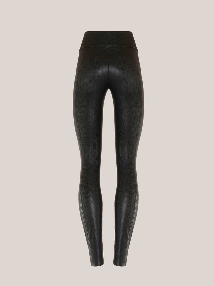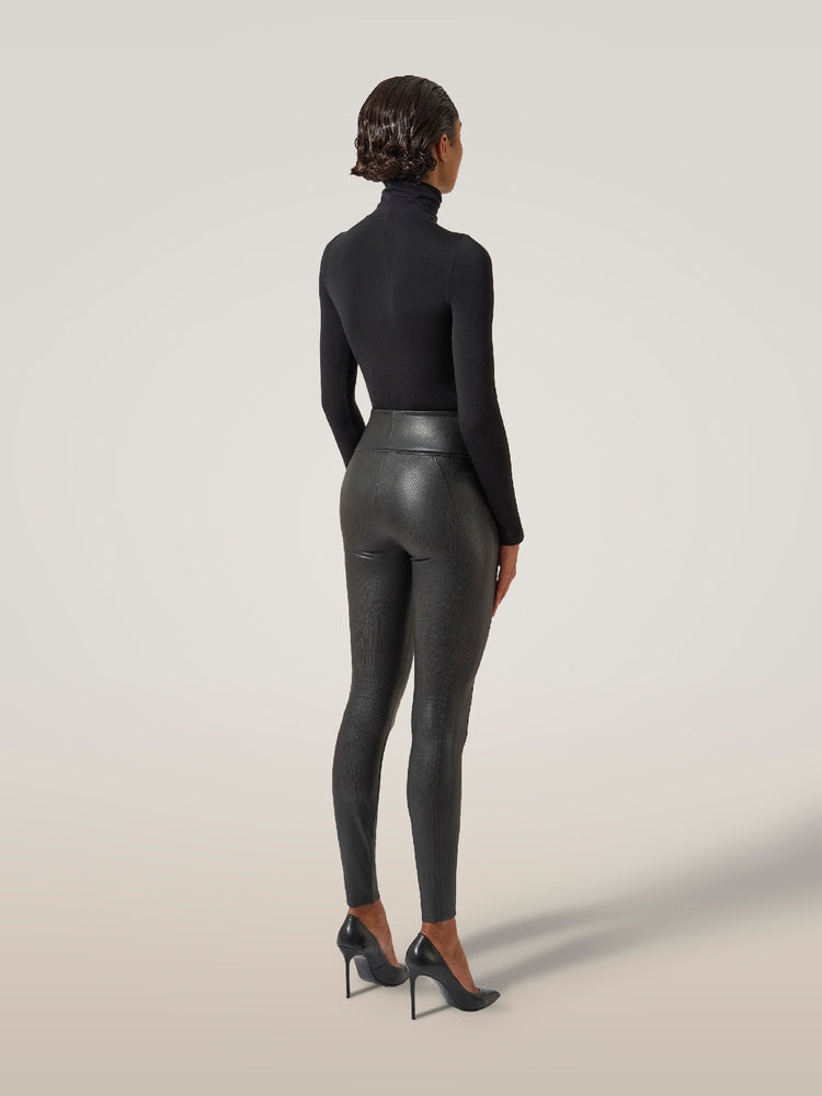 Your beloved Edie Forming Leggings return in a daring python pattern. They're crafted from Wolford's new stretchable faux leather with an embossed snakeskin texture that transforms your figure with a light shaping effect. With elongating seams along the legs and refreshed proportions for an even more flattering fit, they're finished with a comfortable wide waistband and glued edges – streamlined and discreet.