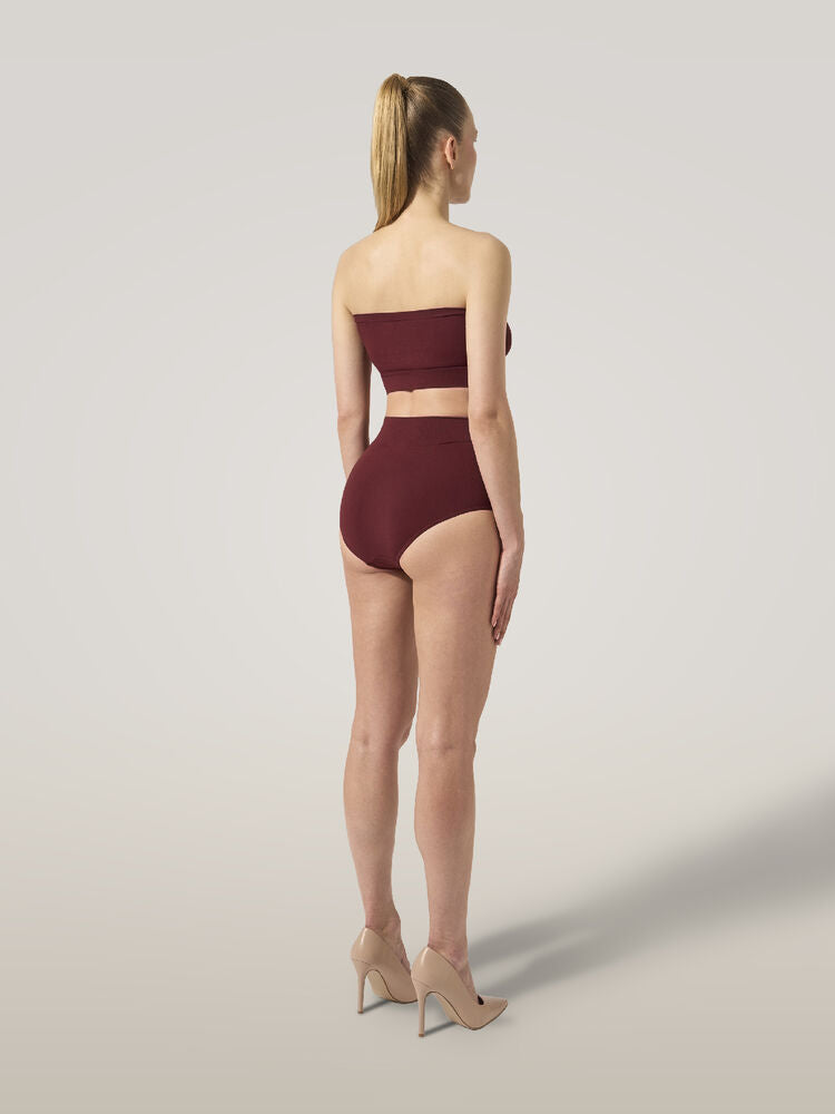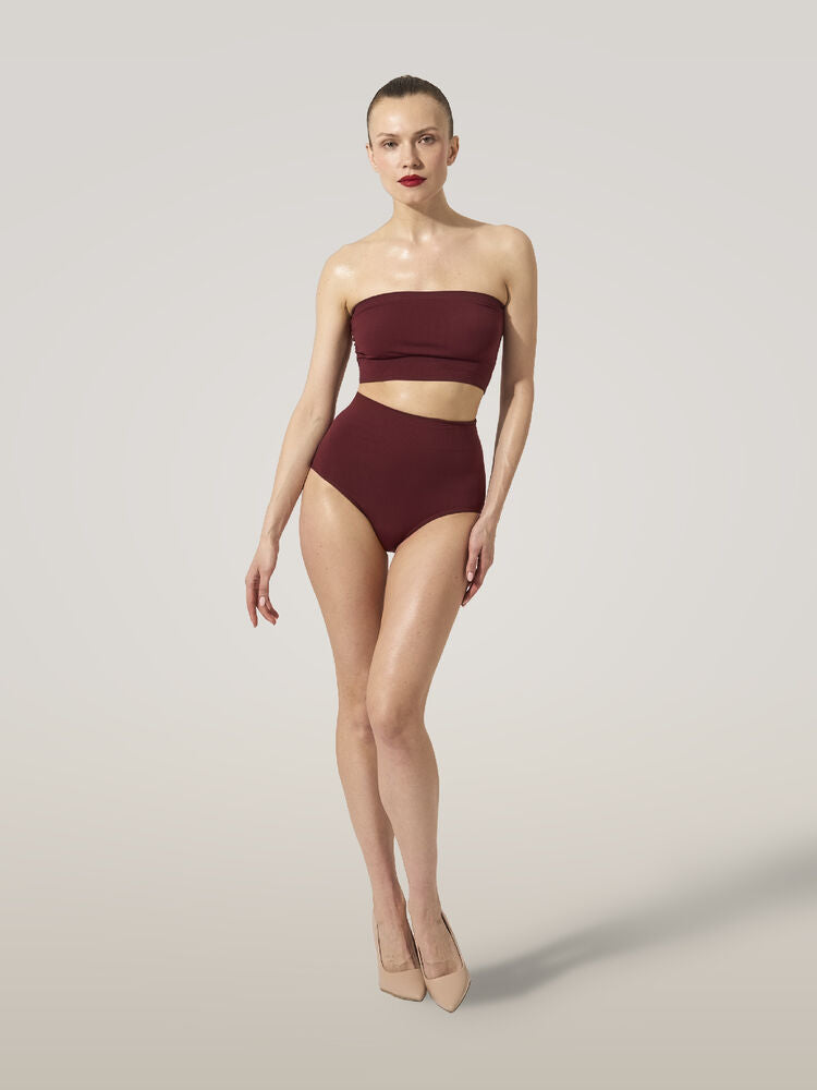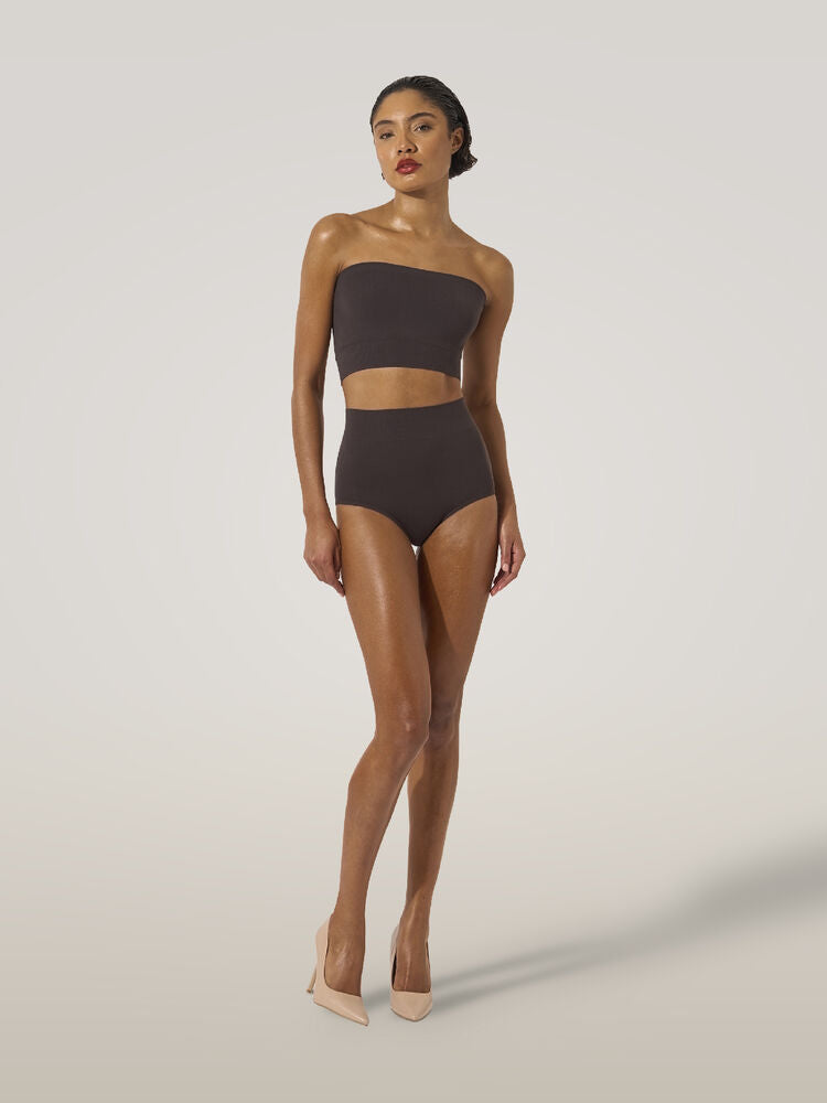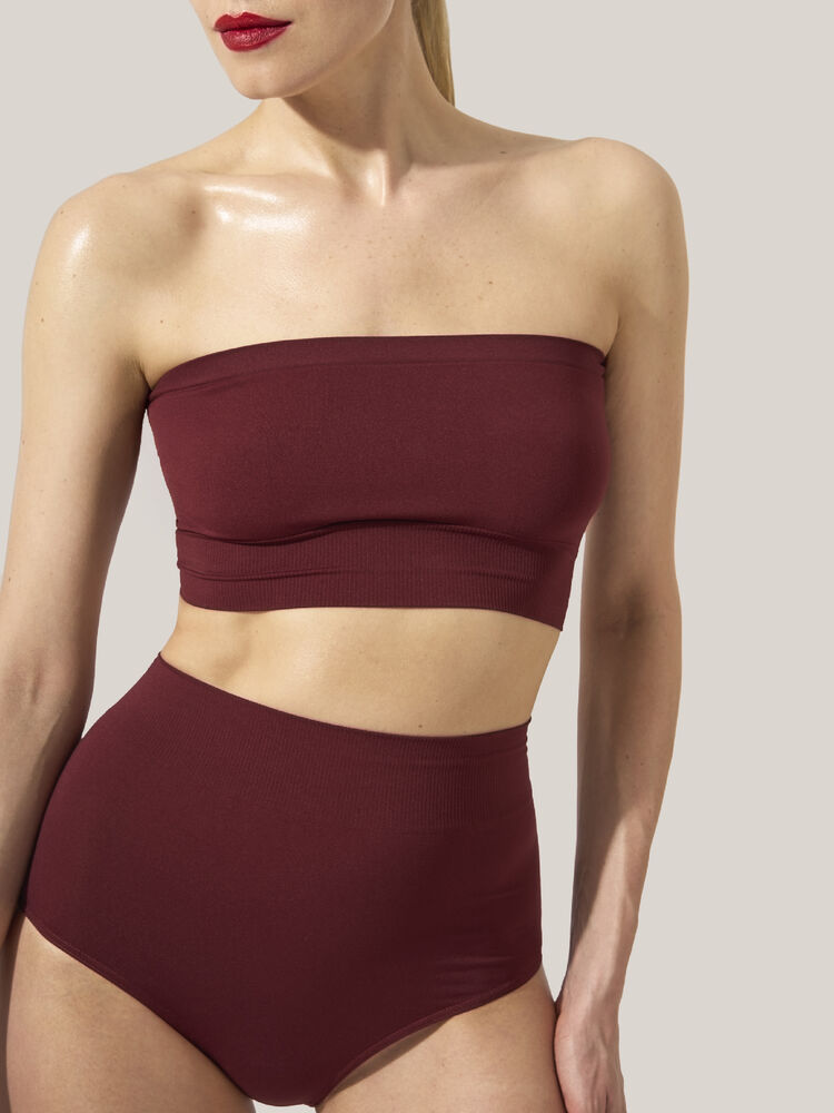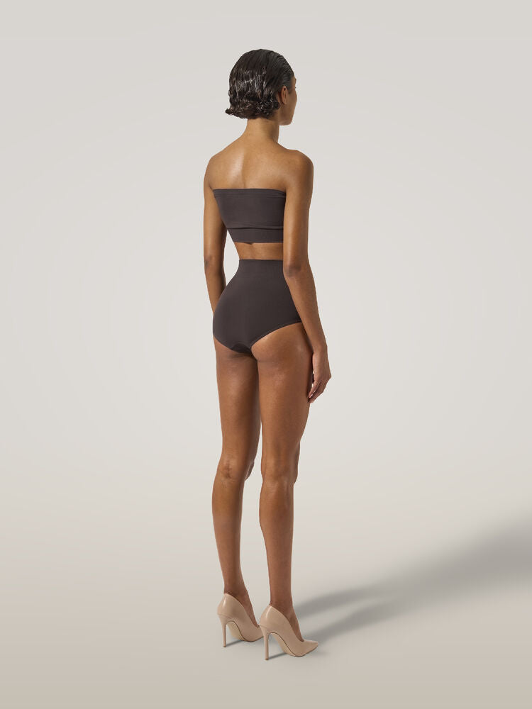 Edgy yet minimalist, this bandeau top is designed with a seamless, tubular construction for a second-skin feel. It's crafted using Wolford's circular knitting technique from recycled BLUFIBRE® yarn – obtained from tire waste and finished with sustainable dyes. The knitted-in edges remain undetectable under clothes.