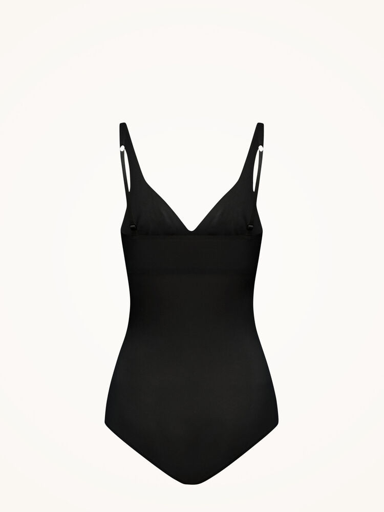 The stylish silicon lines featured on the double-layered molded bust section and straps provide optimal support – no need for a bra. Thanks to the discreet, new version of the Cotton Contour material, the stomach, waist, hips and bottom are shaped perfectly. The flocked selvages and bonded side seams accentuate the minimalist and light feel of this piece.